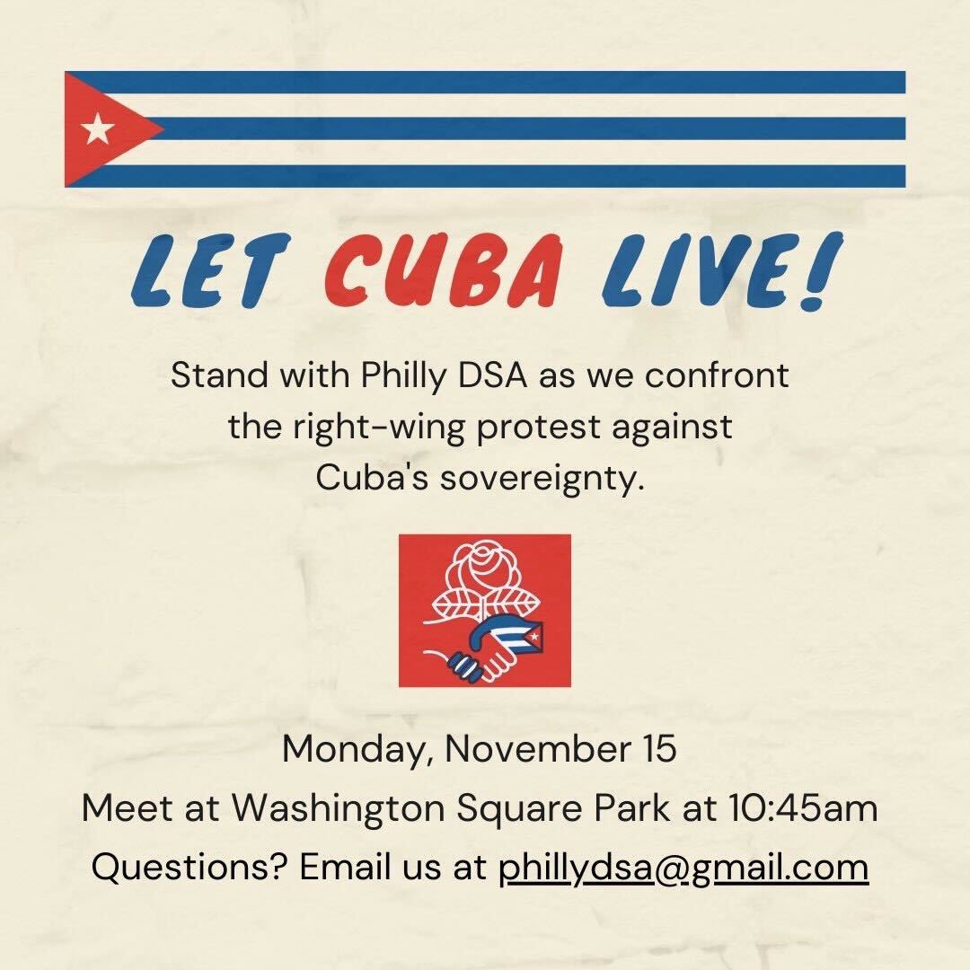 RT @teicherj: End the embargo. Lift the blockade. @PhillyDSA stands with the people of Cuba. https://t.co/Eg39Jmtppx |