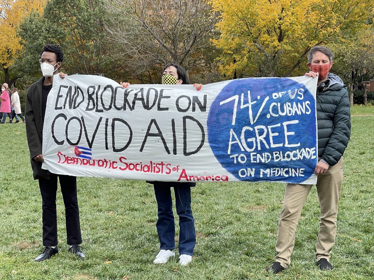 Philly DSA demands that @POTUS end the inhumane embargo on Cuba and immediately lift the blockade on COVD medical supplies. Today at the Liberty Bell, Philly DSA members stood in solidarity with Cuba and against US imperialism. 🇨🇺🌹 https://t.co/MCv9ZVPlMp |
