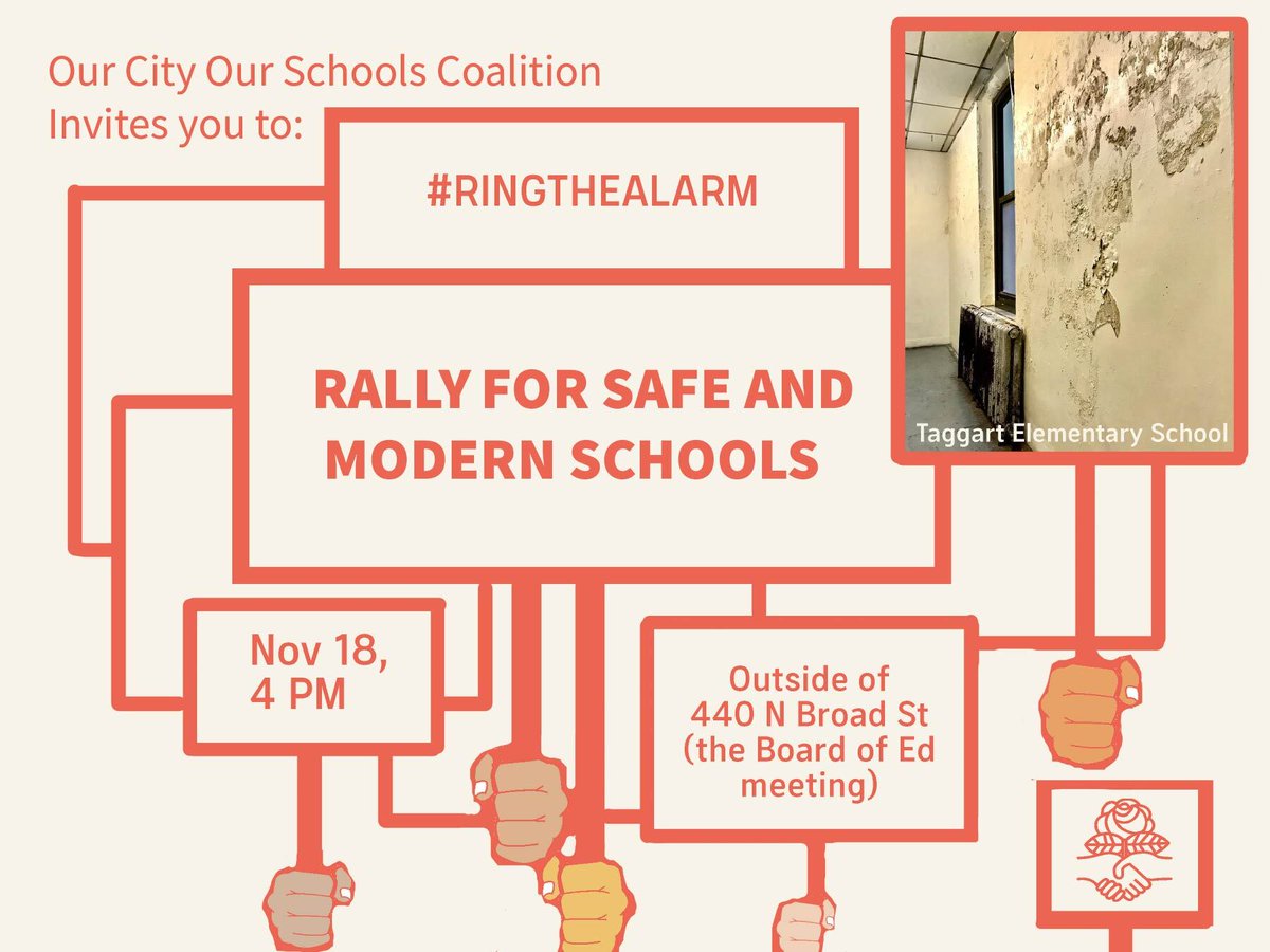 Join Philly DSA and the Our City Our Schools Coalition today at 4pm for Rally for Safe and Modern Schools outside the Board of Ed meeting at 440 N Broad St! #RingTheAlarm https://t.co/dkRQG8mOu0 |