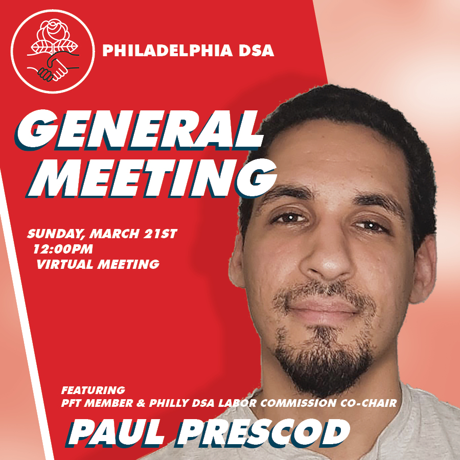Our next virtual General Meeting is Sunday, March 21st at 12 PM! These meetings are where we vote on resolutions that set local policies and work priorities for the chapter, so we urge all members to attend. Please RSVP: https://t.co/97Lx5DGDF0 https://t.co/A6SPFpQGC9 |