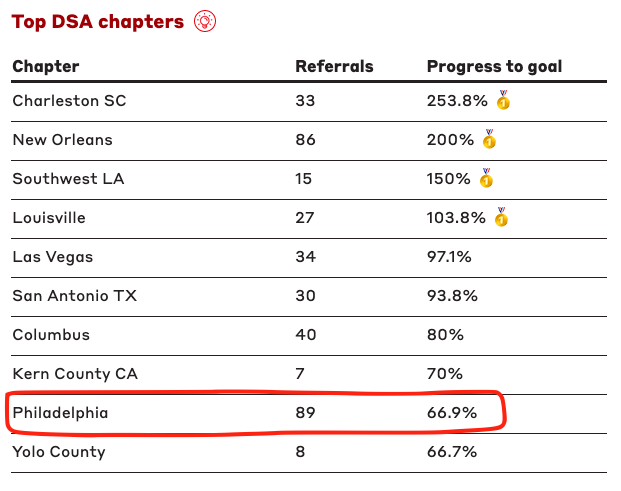 Philly is looking PRETTY DARN GOOD on the DSA100k recruitment leaderboard! But to help keep us ahead of YOLO County DSA, we need you to come to our Organizing Convo training next Sunday! https://t.co/FzNgKHmvGw https://t.co/HFvWwm6wRM |