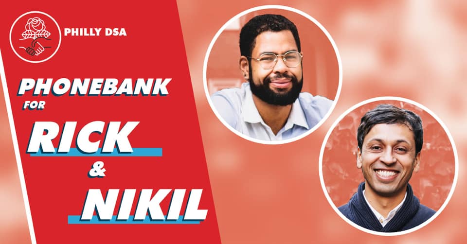 Join us this Saturday as we phone bank for our amazing socialist candidates @NikilSaval and @rick4westphilly RSVP at the link below! https://t.co/5Pd4PibyUR | 2 | 9279 | |