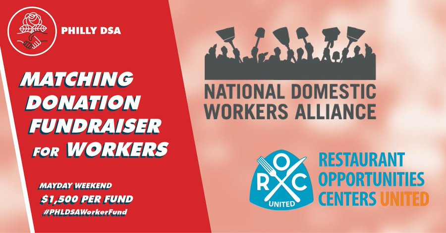 This weekend we're still matching donations to 2 coronavirus worker relief funds! Post screenshots of your receipts with #PHLDSAWorkerFund so we can match your donation! Domestic Worker Alliance: https://t.co/5so0aUeJzZ Restaurant Opportunities Center: https://t.co/wQfXLCE7Lu https://t.co/RqZFzal9iO |